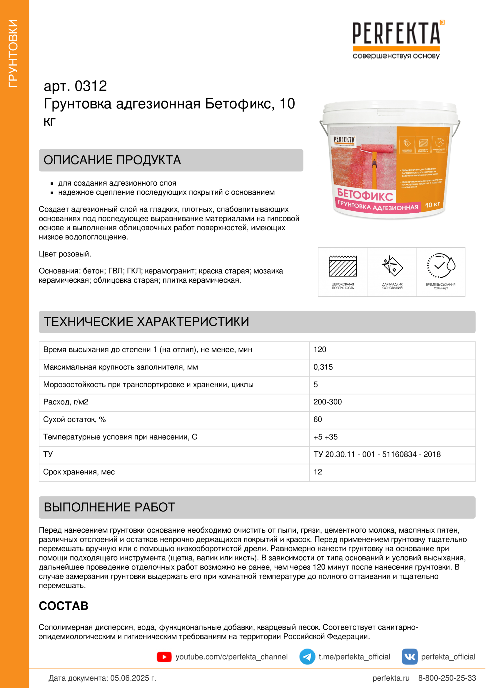 Создает адгезионный слой на гладких, плотных, слабовпитывающих основаниях под последующее выравнивание материалами на гипсовой основе и выполнения облицовочных работ поверхностей, имеющих низкое водопоглощение.