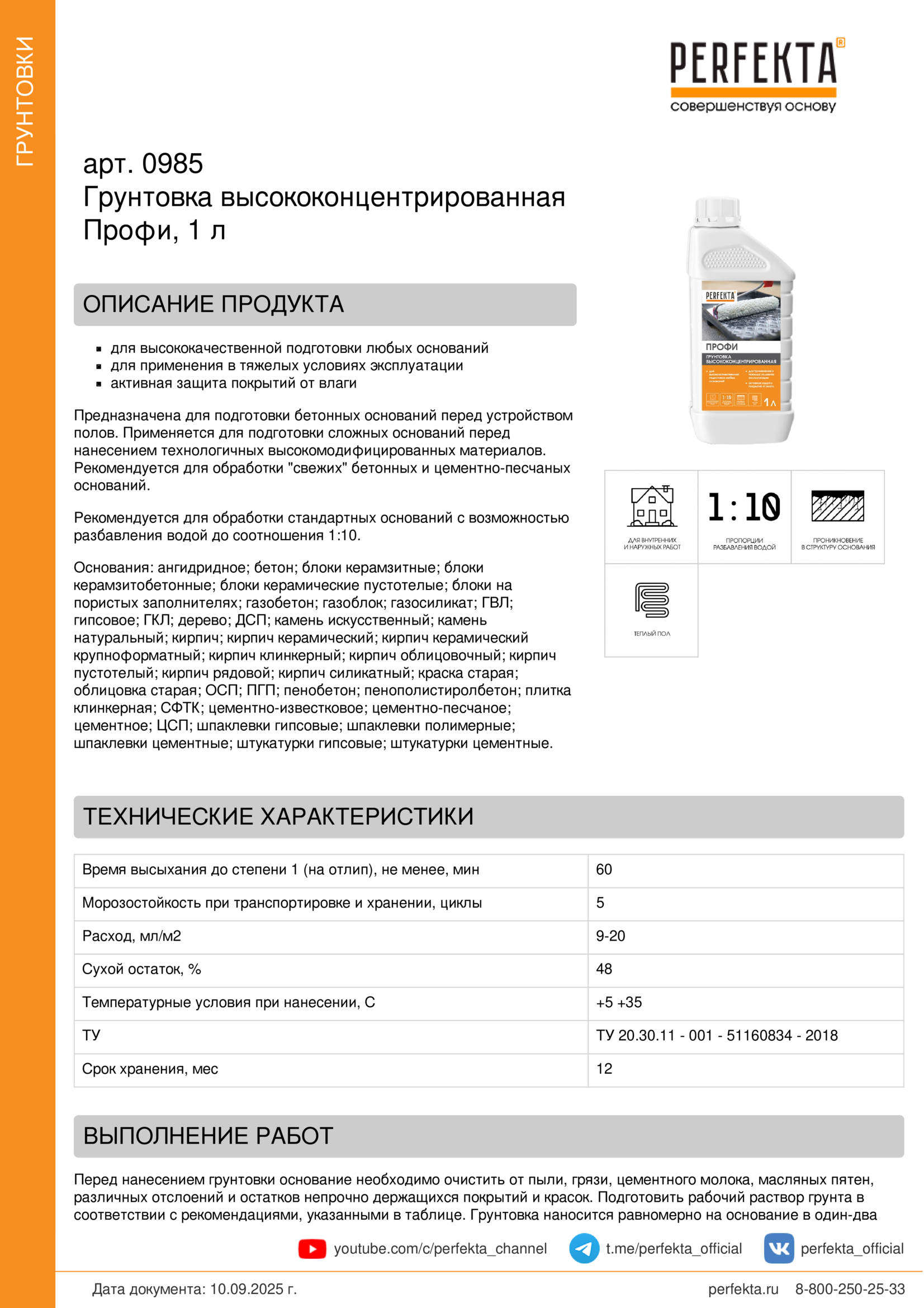Все рекомендации и технические характеристики верны при температуре окружающей среды +20°С и относительной влажности 60 %. Качество материала гарантируется только при точном соблюдении инструкции производителя по технологии применения и требований СНиП и СП. Данная инструкция теряет силу после появления новой версии на сайте perfekta.ru.