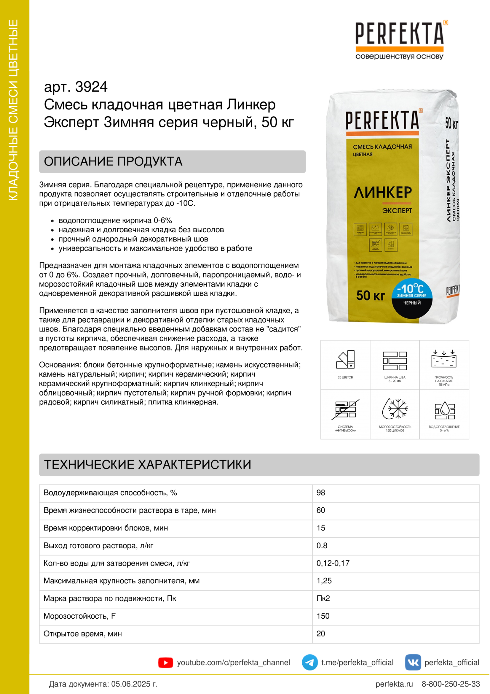 Зимняя серия. Благодаря специальной рецептуре, применение данного продукта позволяет осуществлять строительные и отделочные работы при отрицательных температурах до -10С.
