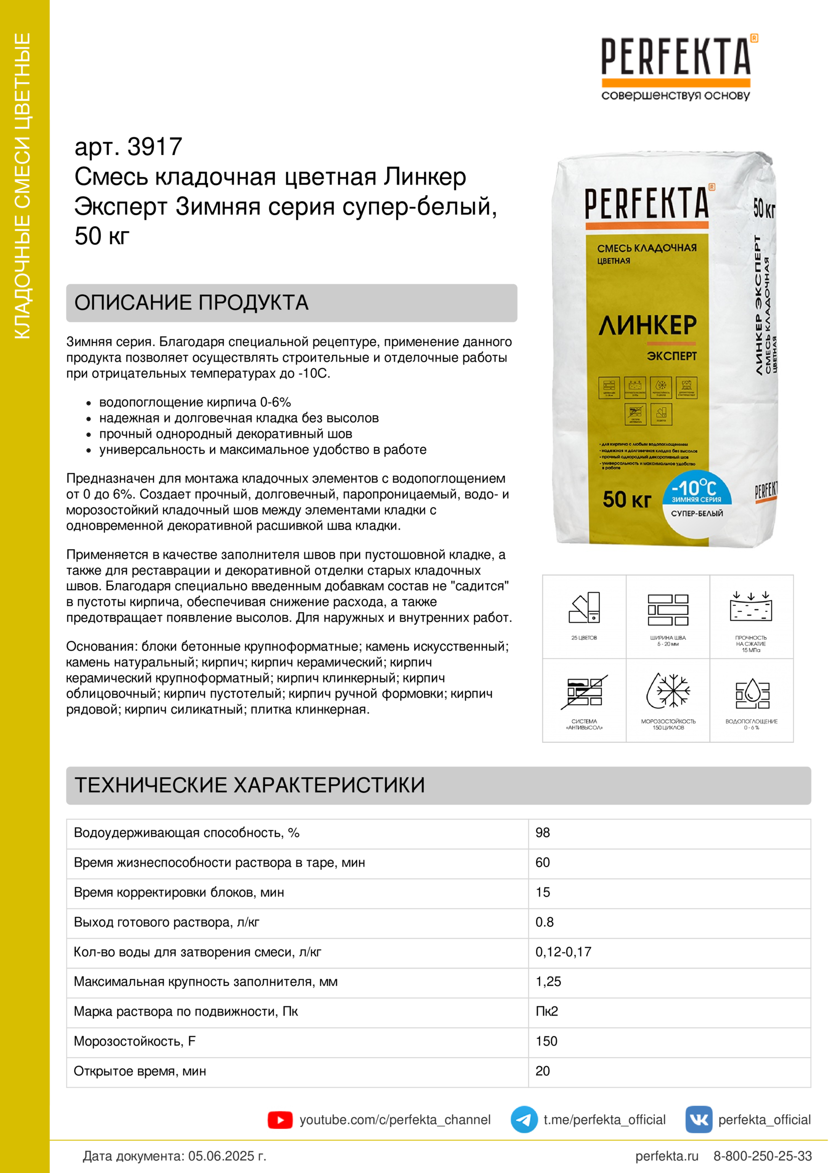 Зимняя серия. Благодаря специальной рецептуре, применение данного продукта позволяет осуществлять строительные и отделочные работы при отрицательных температурах до -10С.