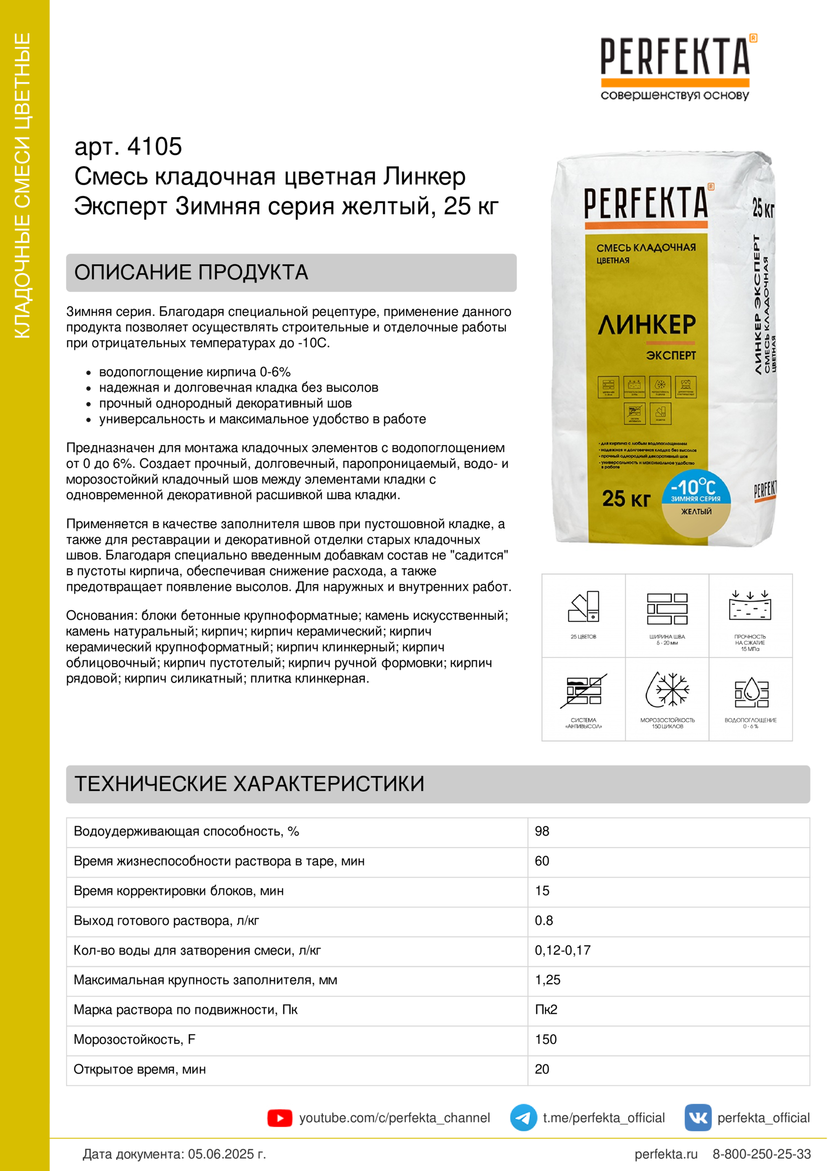 • Смесь кладочная цветная Линкер Эксперт Зимняя серия желтый, 25 кг
