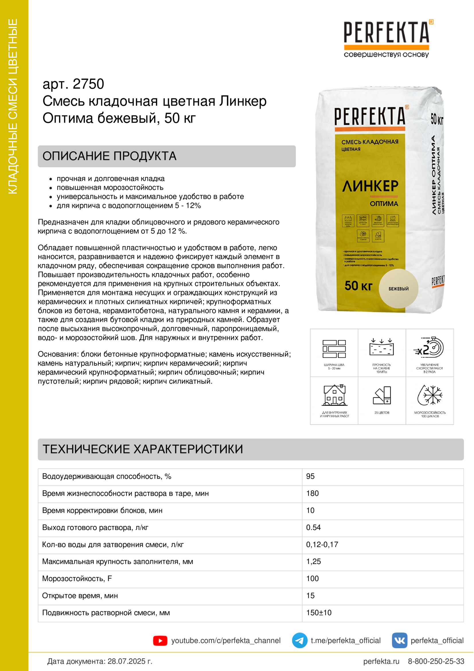 Предназначен для кладки облицовочного и рядового керамического кирпича с водопоглощением от 5 до 12 %.