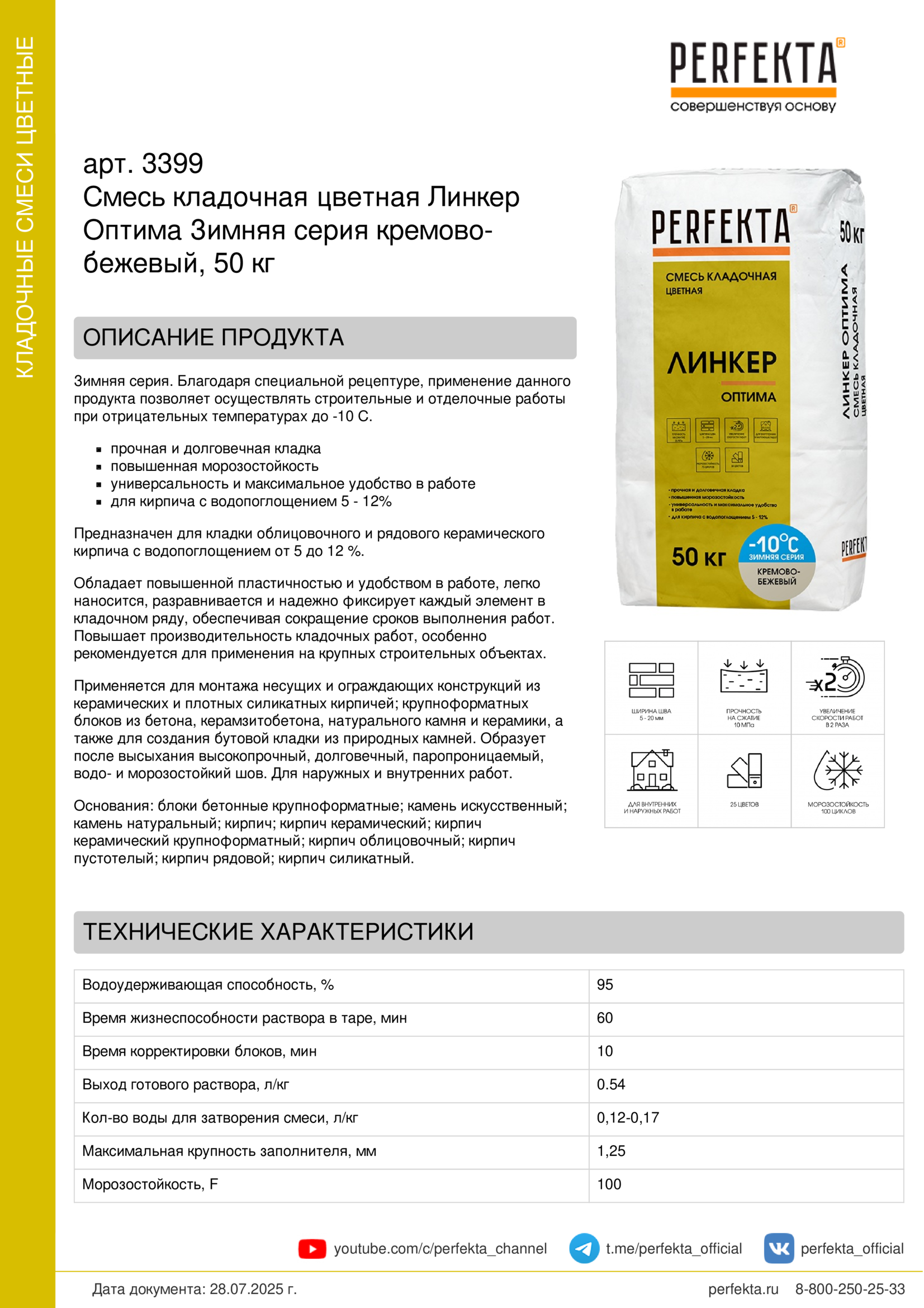 Зимняя серия. Благодаря специальной рецептуре, применение данного продукта позволяет осуществлять строительные и отделочные работы при отрицательных температурах до -10 С.