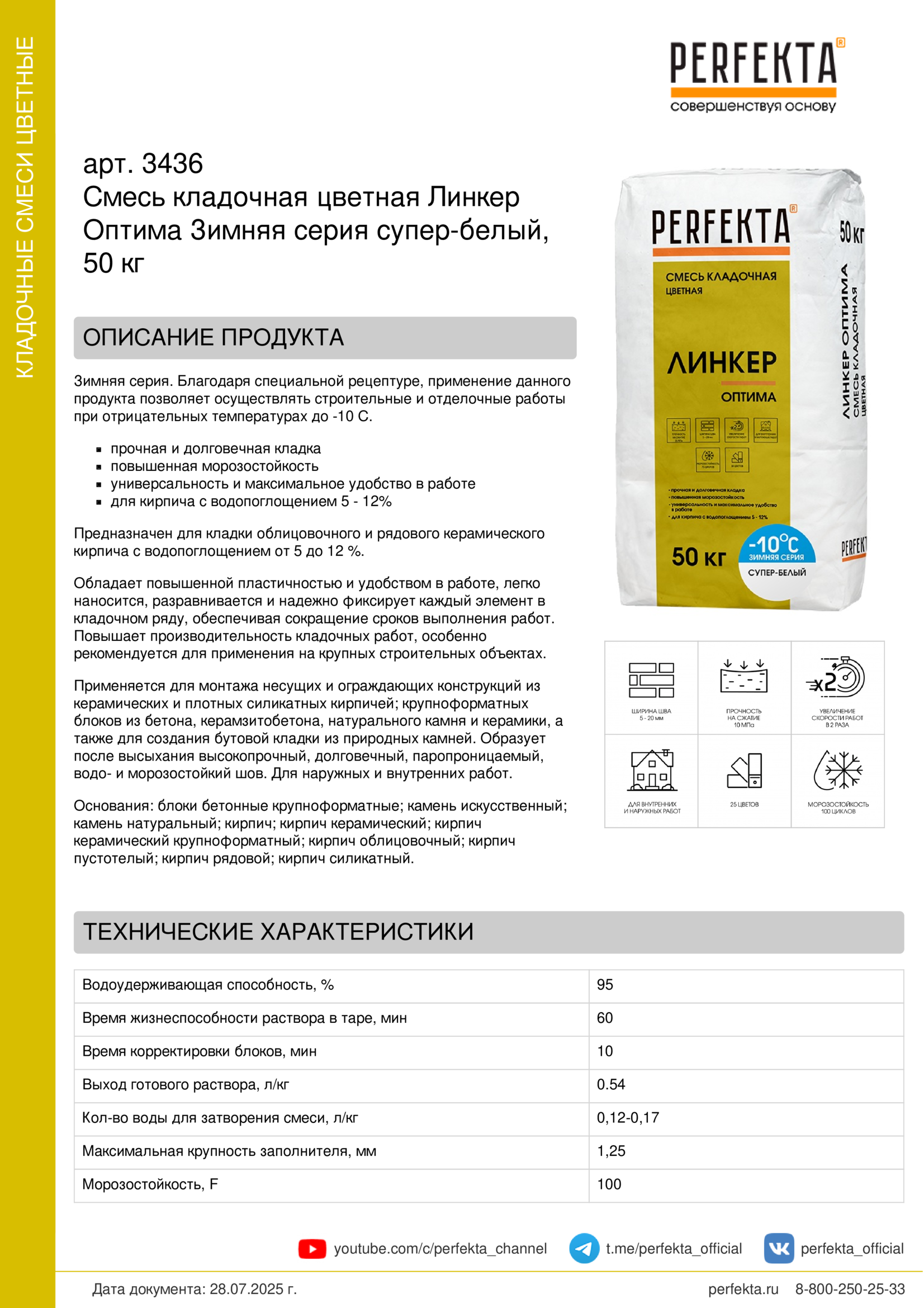 Зимняя серия. Благодаря специальной рецептуре, применение данного продукта позволяет осуществлять строительные и отделочные работы при отрицательных температурах до -10 С.
