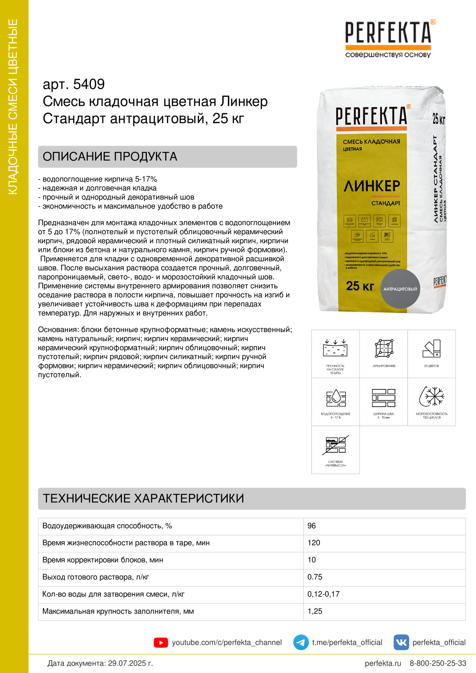 • Смесь кладочная цветная Линкер Стандарт антрацитовый, 25 кг