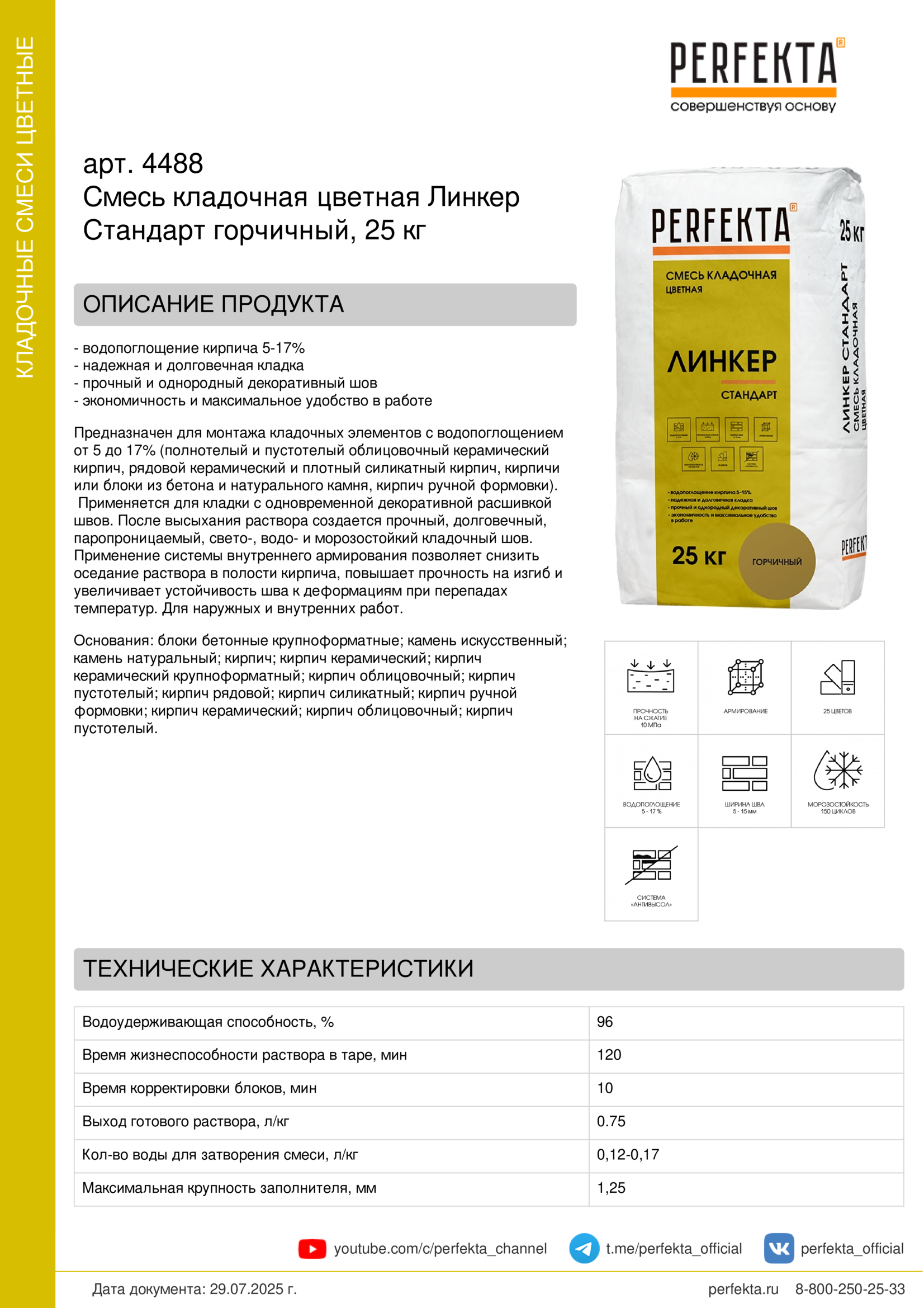 Все рекомендации и технические характеристики верны при температуре окружающей среды +20°С и относительной влажности 60 %. Качество материала гарантируется только при точном соблюдении инструкции производителя по технологии применения и требований СНиП и СП. Данная инструкция теряет силу после появления новой версии на сайте perfekta.ru.