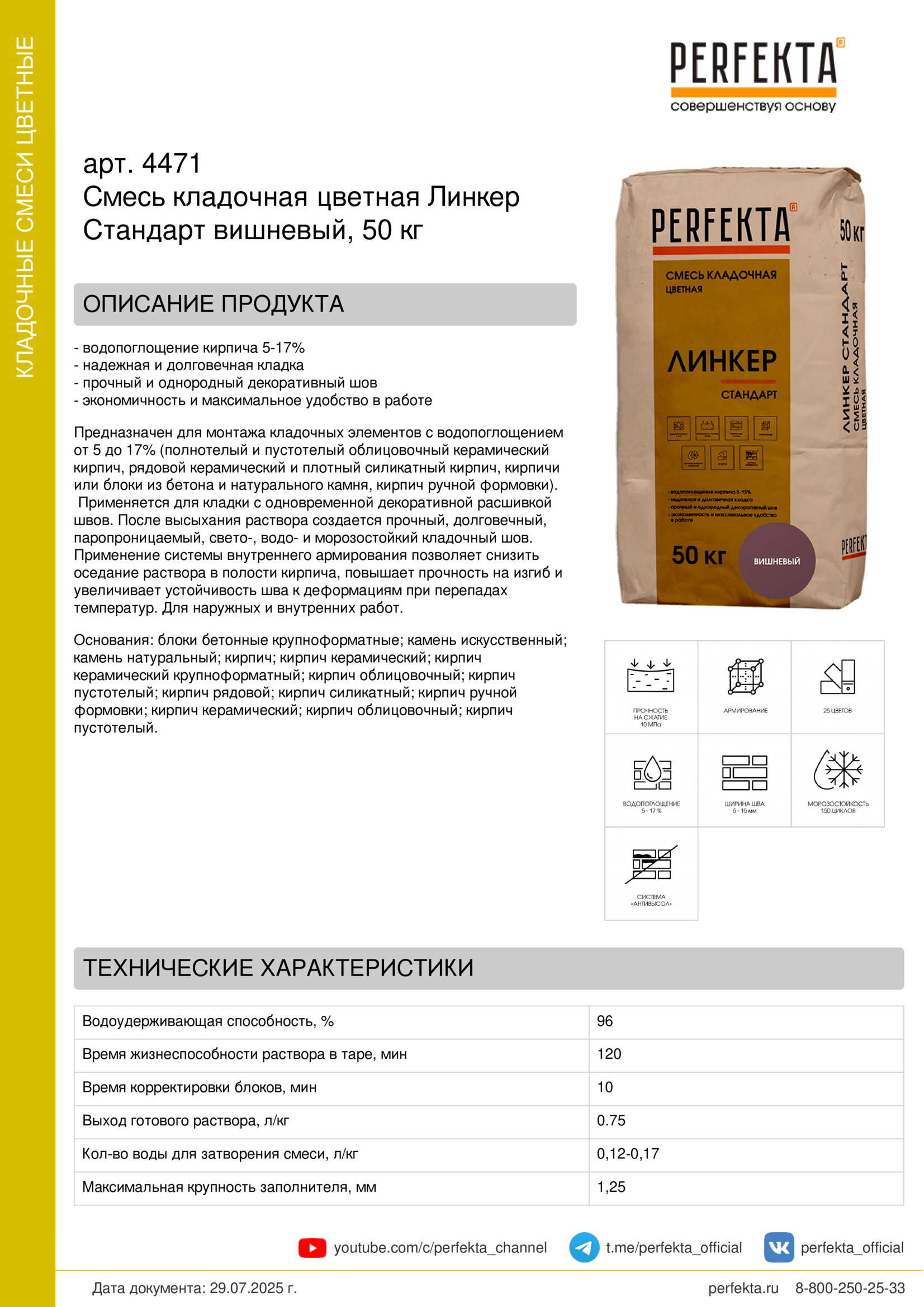 Все рекомендации и технические характеристики верны при температуре окружающей среды +20°С и относительной влажности 60 %. Качество материала гарантируется только при точном соблюдении инструкции производителя по технологии применения и требований СНиП и СП. Данная инструкция теряет силу после появления новой версии на сайте perfekta.ru.