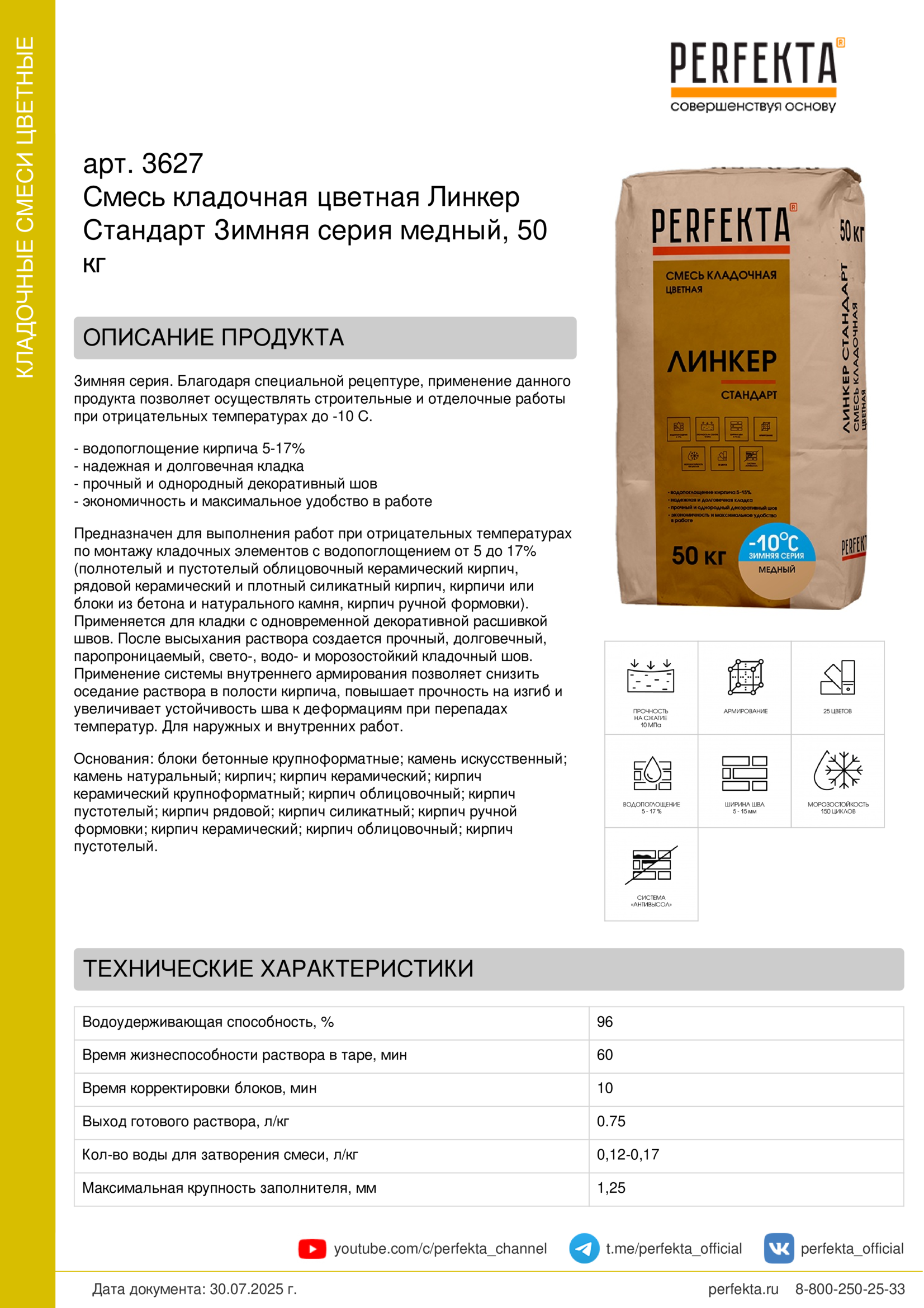 Зимняя серия. Благодаря специальной рецептуре, применение данного продукта позволяет осуществлять строительные и отделочные работы при отрицательных температурах до -10 С.