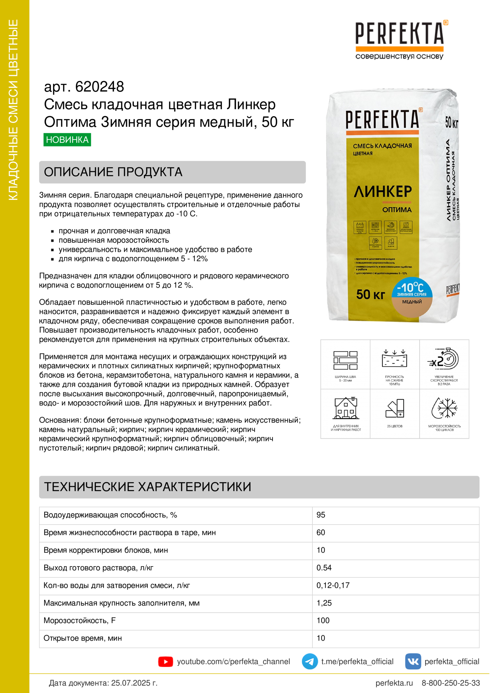 Зимняя серия. Благодаря специальной рецептуре, применение данного продукта позволяет осуществлять строительные и отделочные работы при отрицательных температурах до -10 С.