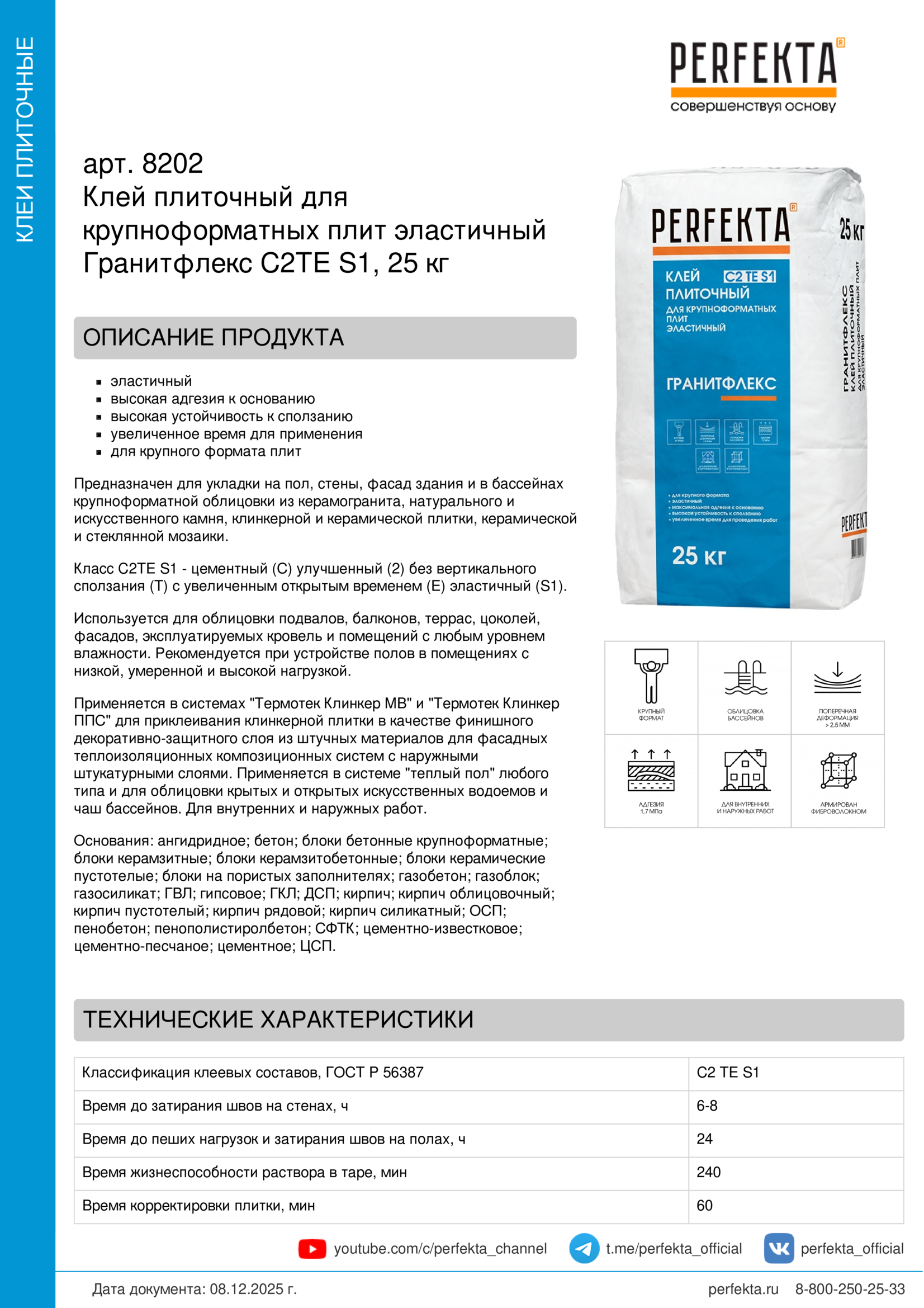 Все рекомендации и технические характеристики верны при температуре окружающей среды +20 С и относительной влажности 60 %. Качество материала гарантируется только при точном соблюдении инструкции Производителю по технологии применения и требований СНиП и СП. Данная инструкция теряет силу после появления новой версии на сайте perfekta.ru.