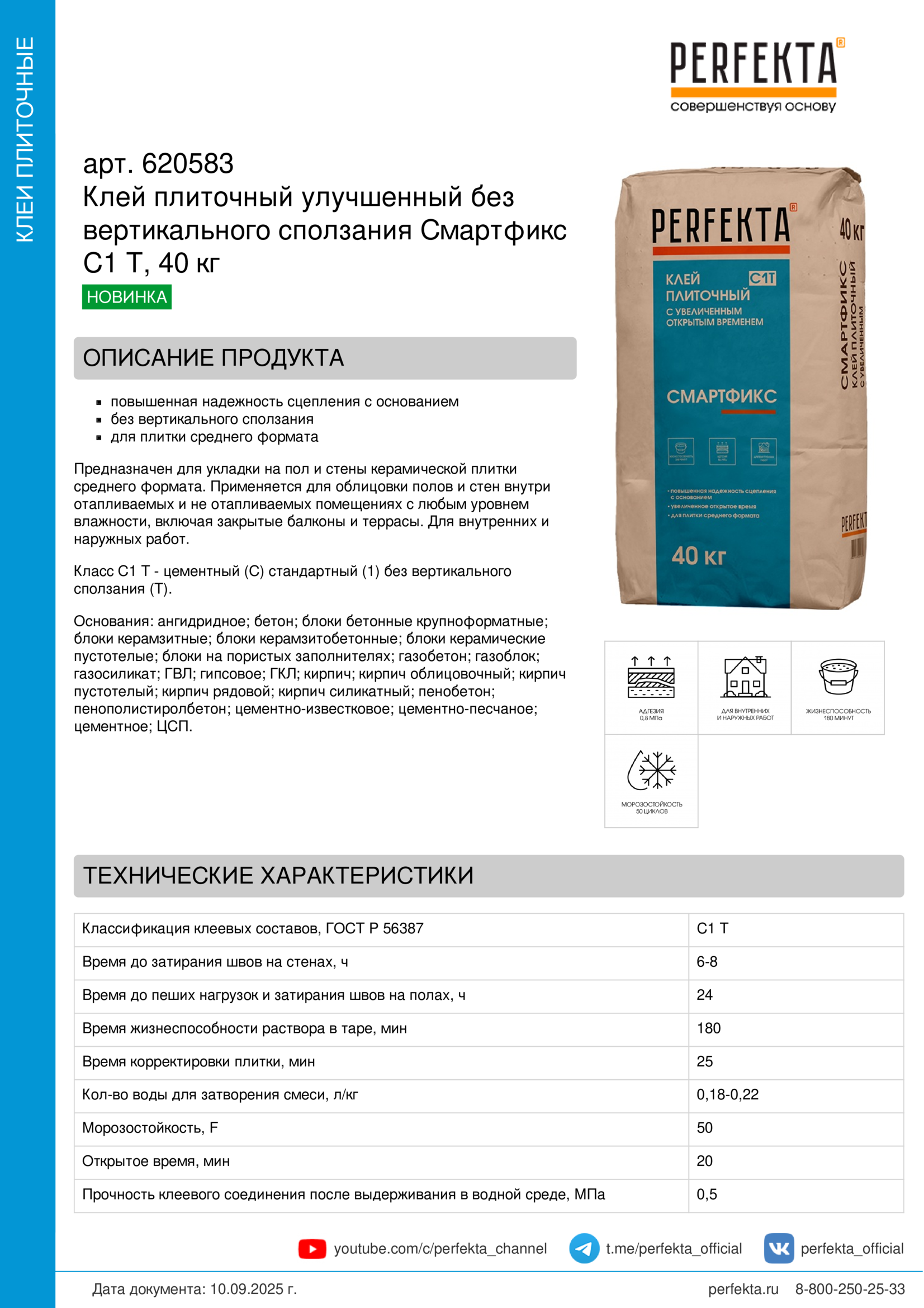 Класс С1 T - цементный (С) стандартный (1) без вертикального сползания (T).