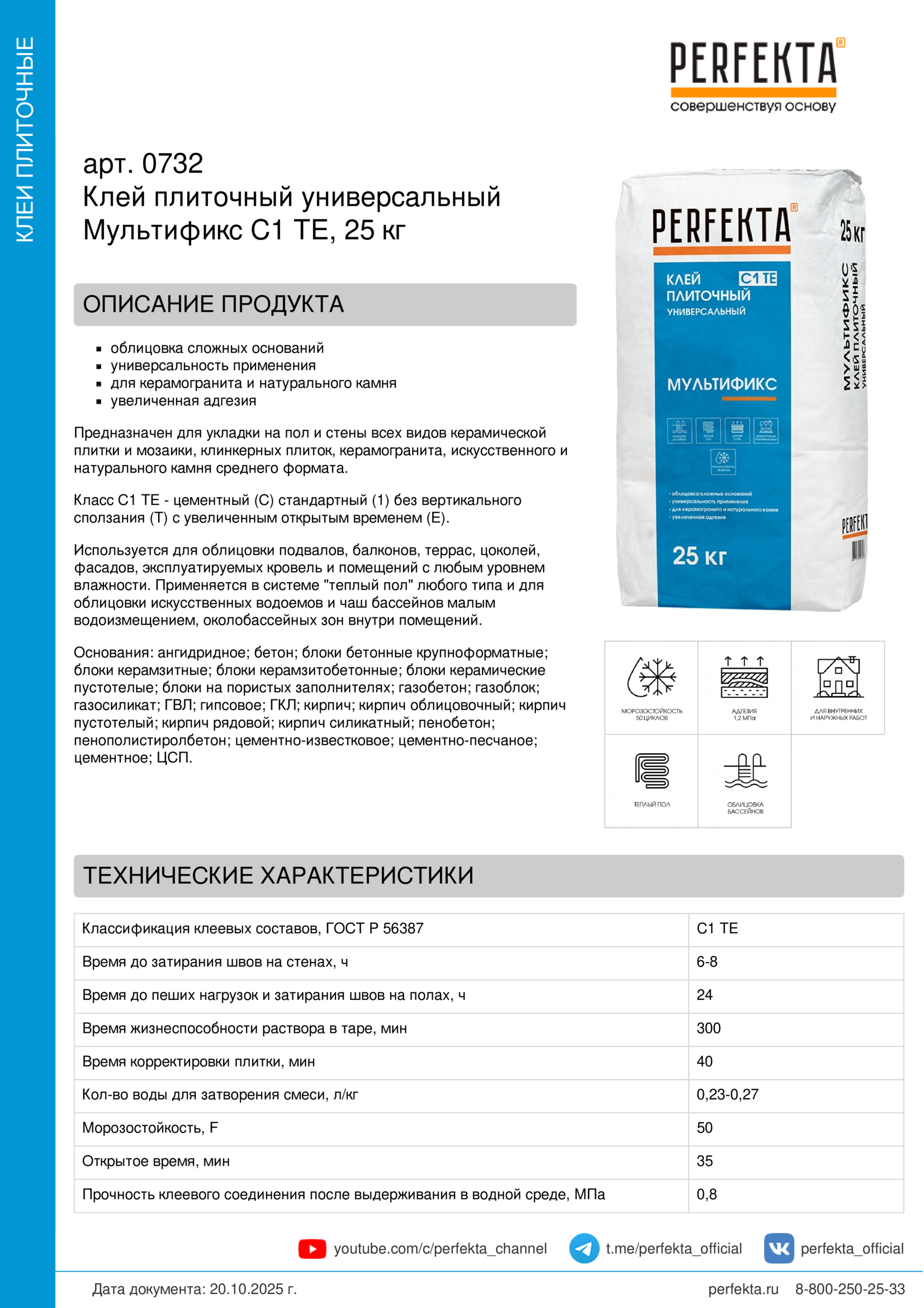 Все рекомендации и технические характеристики верны при температуре окружающей среды +20ºС и относительной влажности 60%. Качество материала гарантируется только при точном соблюдении инструкции Производителя по технологии применения и требований СНиП и СП. Данная инструкция теряет силу после появления новой версии на сайте perfekta.ru.