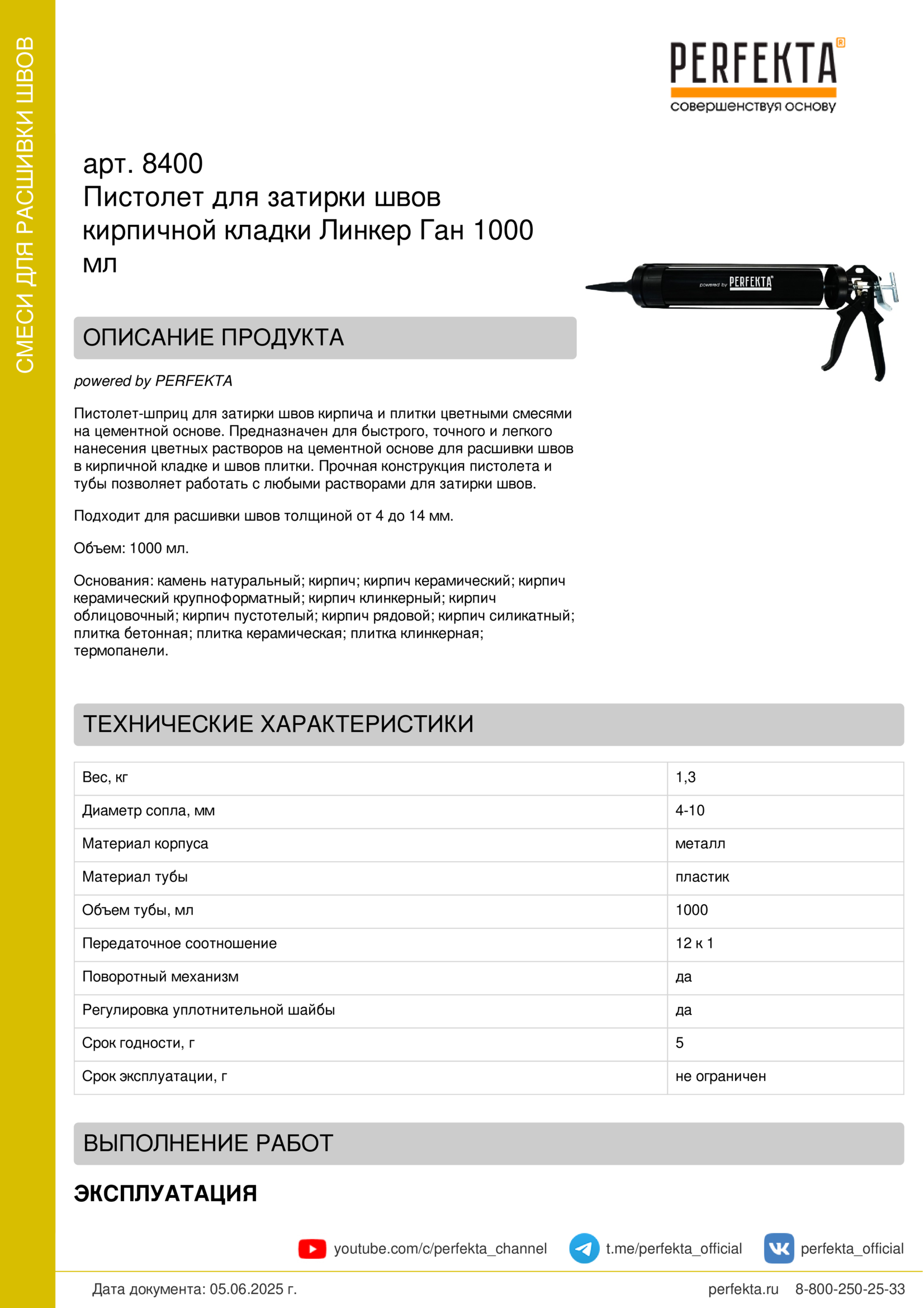 Пистолет для затирки швов кирпичной кладки Линкер Ган 1000 мл
