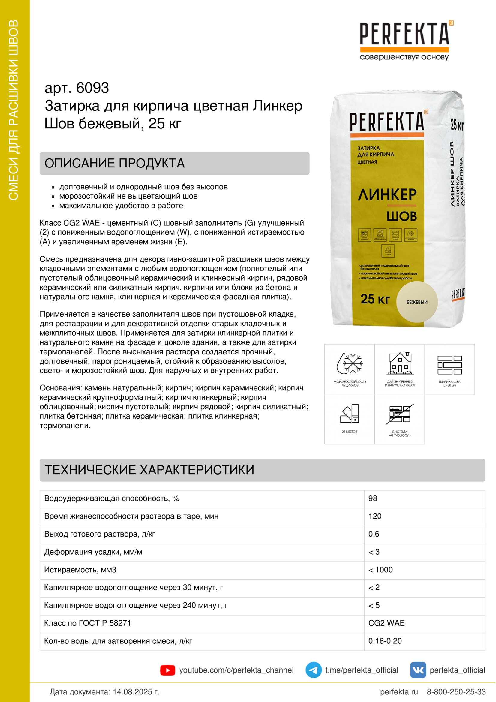 Смесь предназначена для декоративно-защитной расшивки швов между кладочными элементами с любым водопоглощением (полнотелый или пустотелый облицовочный керамический и клинкерный кирпич, рядовой керамический или силикатный кирпич, кирпичи или блоки из бетона и натурального камня, клинкерная и керамическая фасадная плитка).