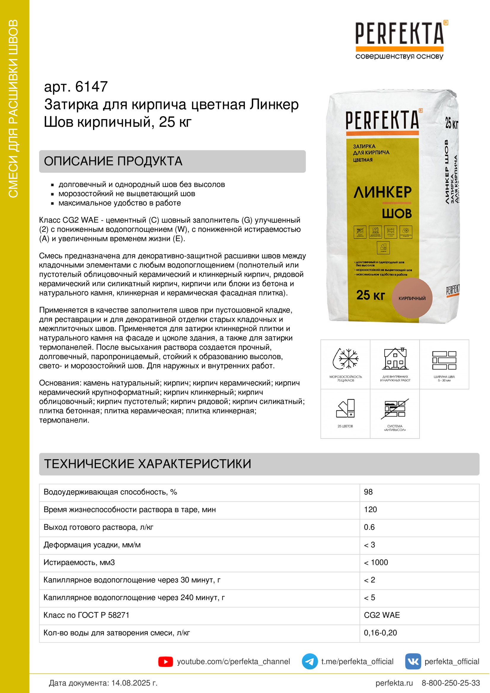 Смесь предназначена для декоративно-защитной расшивки швов между кладочными элементами с любым водопоглощением (полнотелый или пустотелый облицовочный керамический и клинкерный кирпич, рядовой керамический или силикатный кирпич, кирпичи или блоки из бетона и натурального камня, клинкерная и керамическая фасадная плитка).