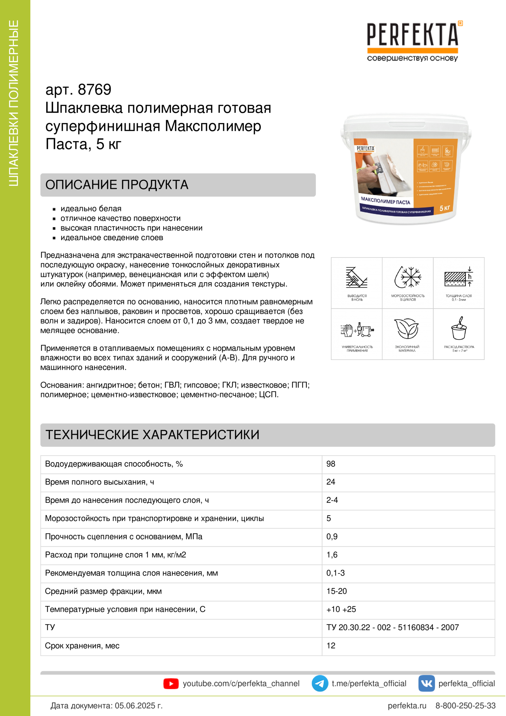 Шпаклевка полимерная готовая суперфинишная Максполимер Паста, 5 кг