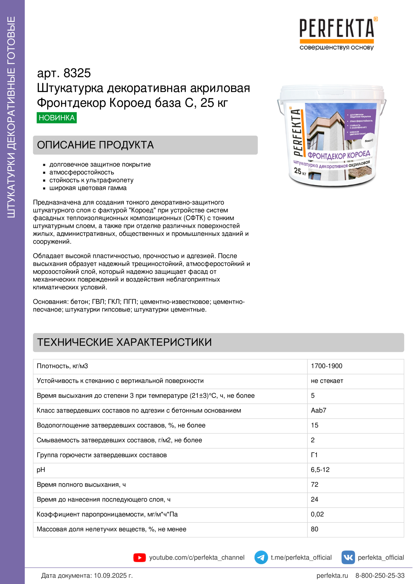 Обладает высокой пластичностью, прочностью и адгезией. После высыхания образует надежный трещиностойкий, атмосферостойкий и морозостойкий слой, который надежно защищает фасад от механических повреждений и воздействия неблагоприятных климатических условий.