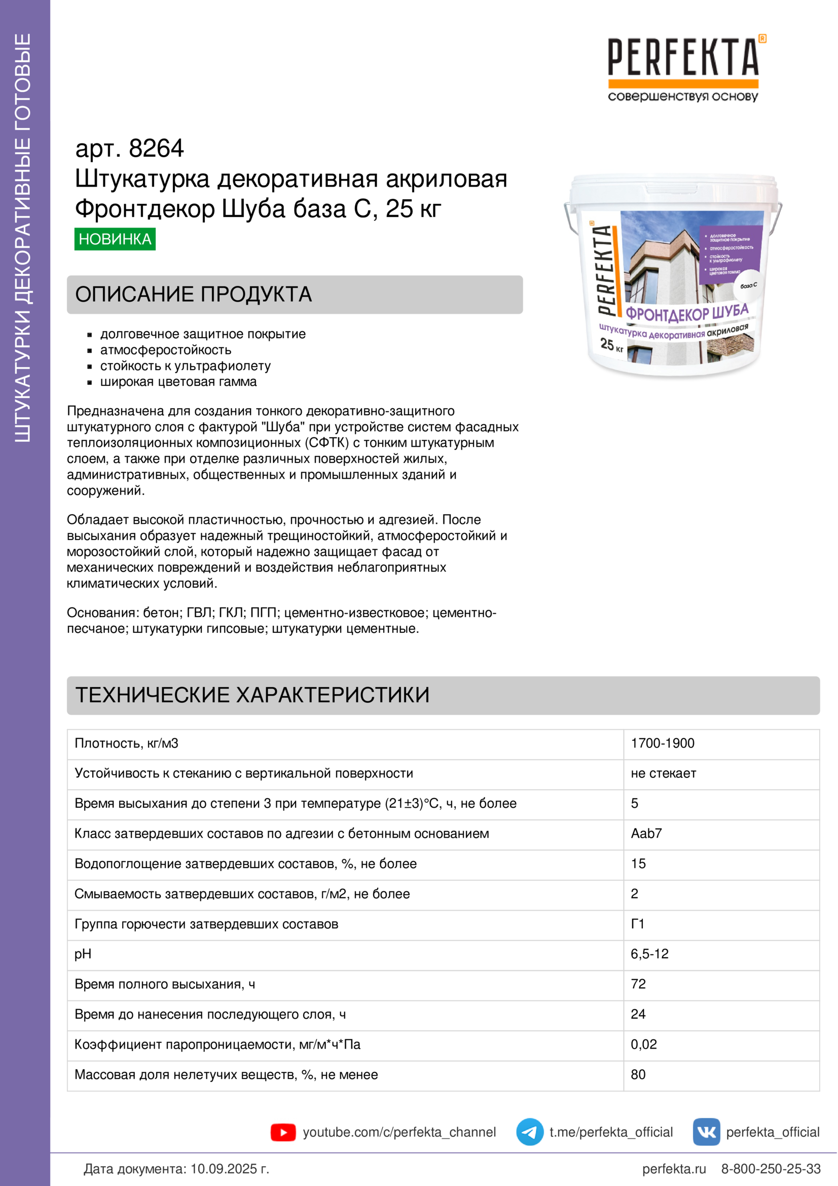 Предназначена для создания тонкого декоративно-защитного штукатурного слоя с фактурой "Шуба" при устройстве систем фасадных теплоизоляционных композиционных (СФТК) с тонким штукатурным слоем, а также при отделке различных поверхностей жилых, административных, общественных и промышленных зданий и сооружений.