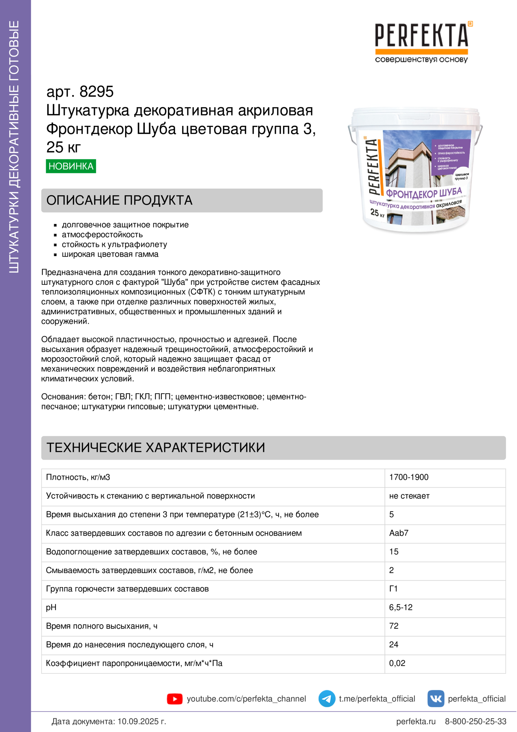 Предназначена для создания тонкого декоративно-защитного штукатурного слоя с фактурой "Шуба" при устройстве систем фасадных теплоизоляционных композиционных (СФТК) с тонким штукатурным слоем, а также при отделке различных поверхностей жилых, административных, общественных и промышленных зданий и сооружений.