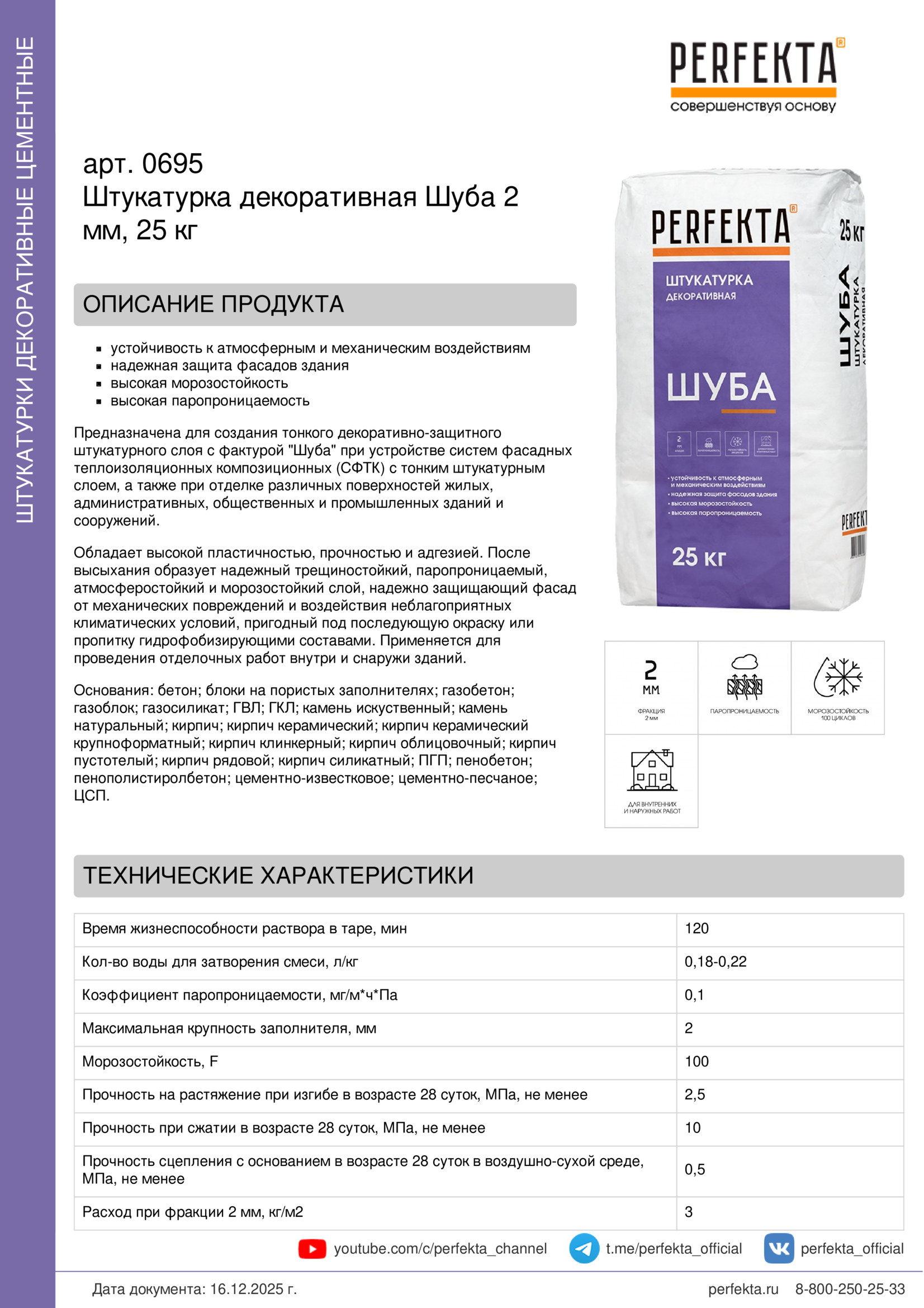 Все рекомендации и технические характеристики верны при температуре окружающей среды +20°С и относительной влажности 60 %. Качество материала гарантируется только при точном соблюдении инструкции производителя по технологии применения и требований СНиП и СП. Данная инструкция теряет силу после появления новой версии на сайте perfekta.ru.