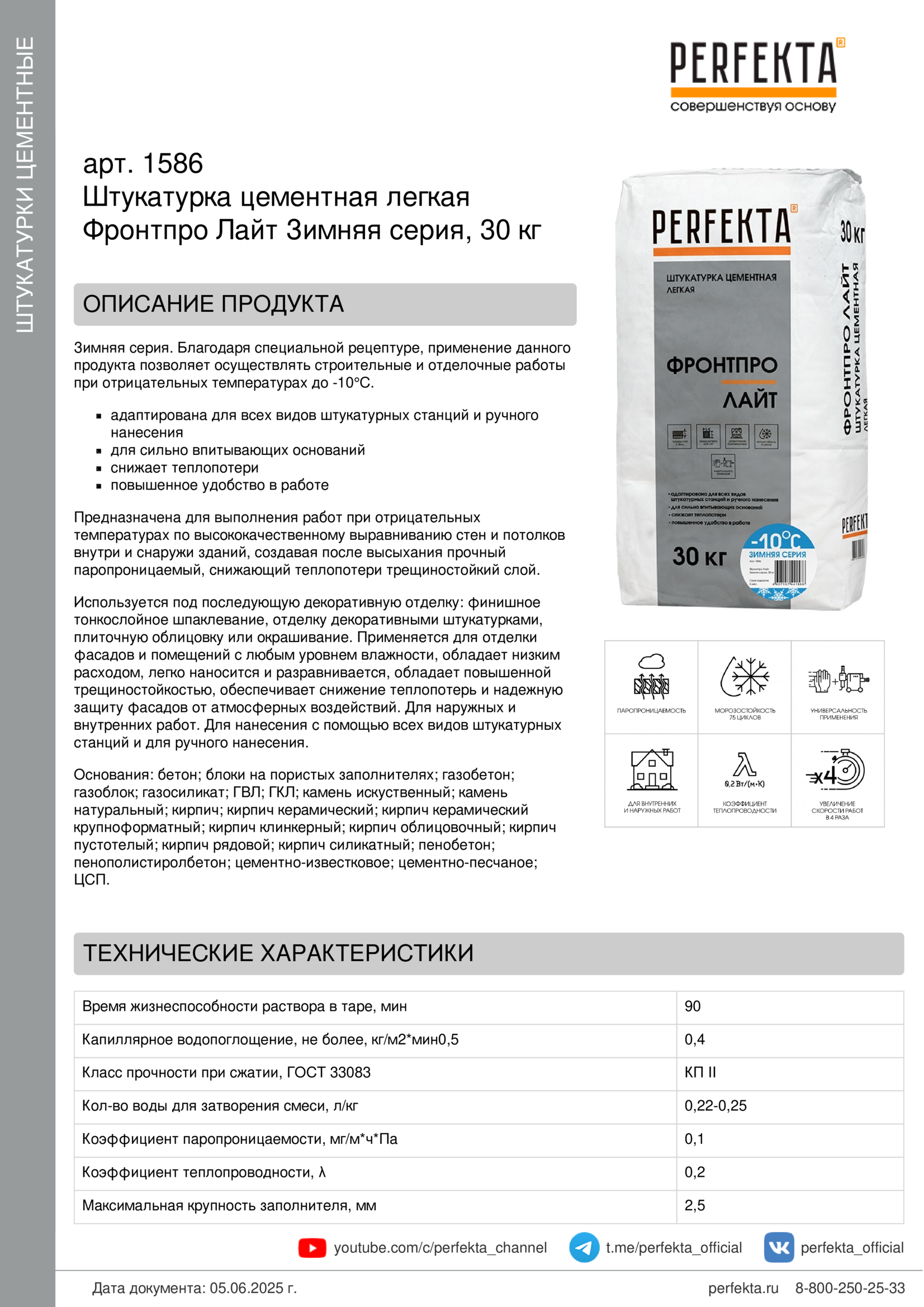 Все рекомендации и технические характеристики верны при температуре окружающей среды +20°С и относительной влажности 60%. Качество материала гарантируется только при точном соблюдении инструкции производителя по технологии применения и требований СНиП и СП. Данная инструкция теряет силу после появления новой версии на сайте perfekta.ru.