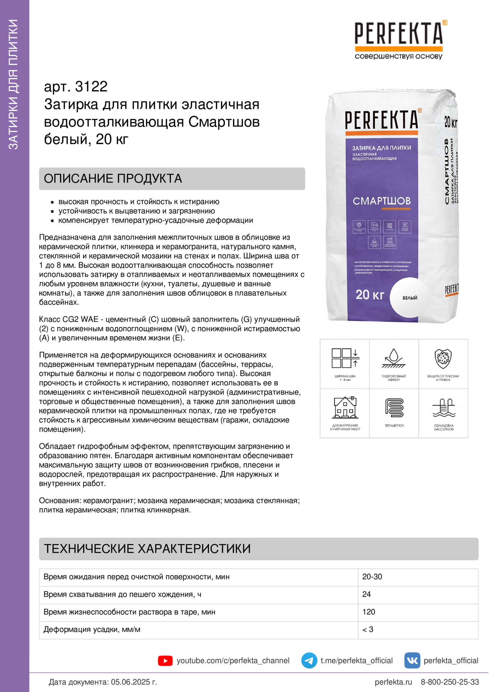 Все рекомендации и технические характеристики верны при температуре окружающей среды +20 С и относительной влажности 60 %. Качество материала гарантируется только при точном соблюдении инструкции производителя по технологии применения и требований СНиП и СП. Данная инструкция теряет силу после появления новой версии на сайте perfekta.ru.