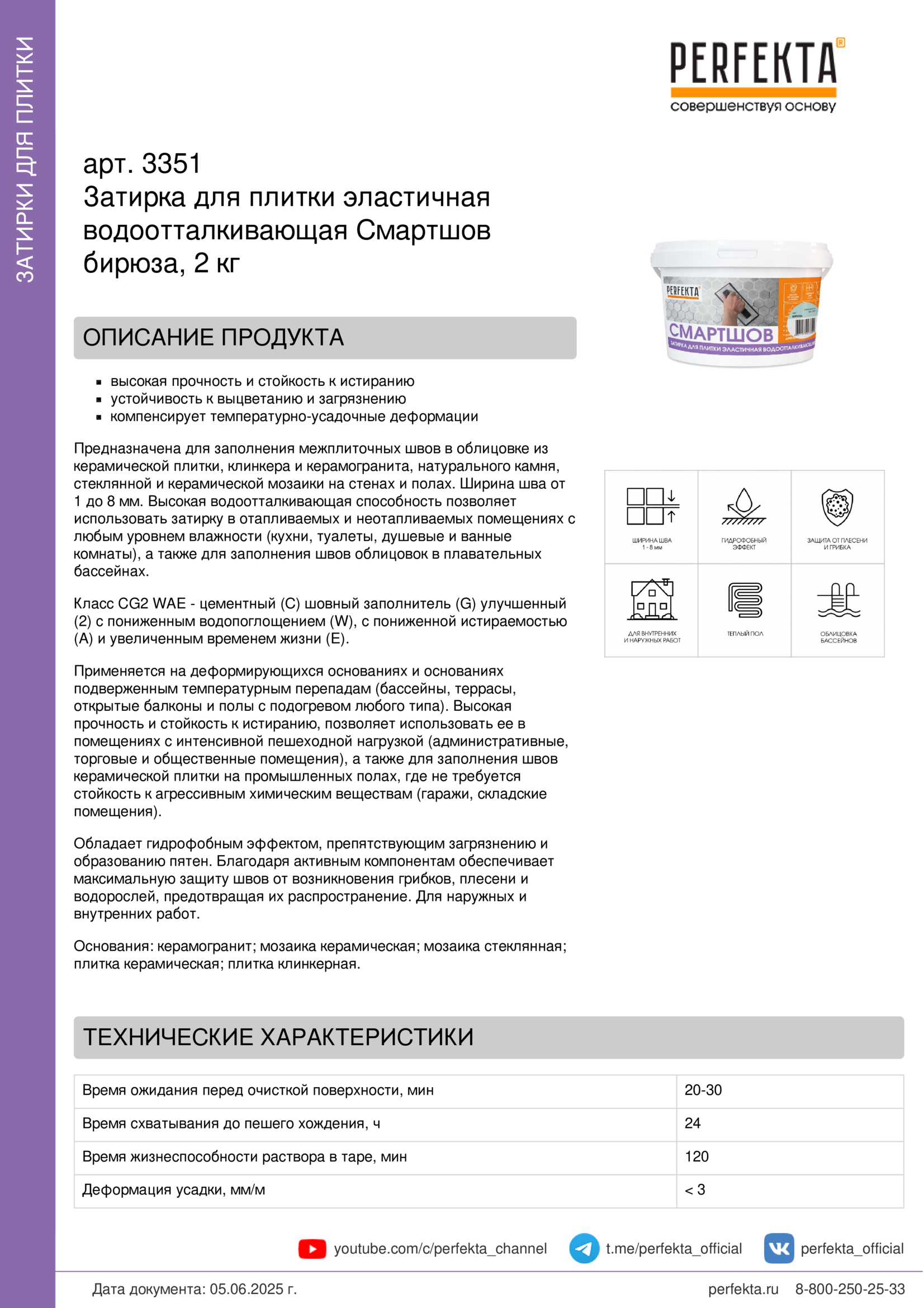 Все рекомендации и технические характеристики верны при температуре окружающей среды +20 С и относительной влажности 60 %. Качество материала гарантируется только при точном соблюдении инструкции производителя по технологии применения и требований СНиП и СП. Данная инструкция теряет силу после появления новой версии на сайте perfekta.ru.