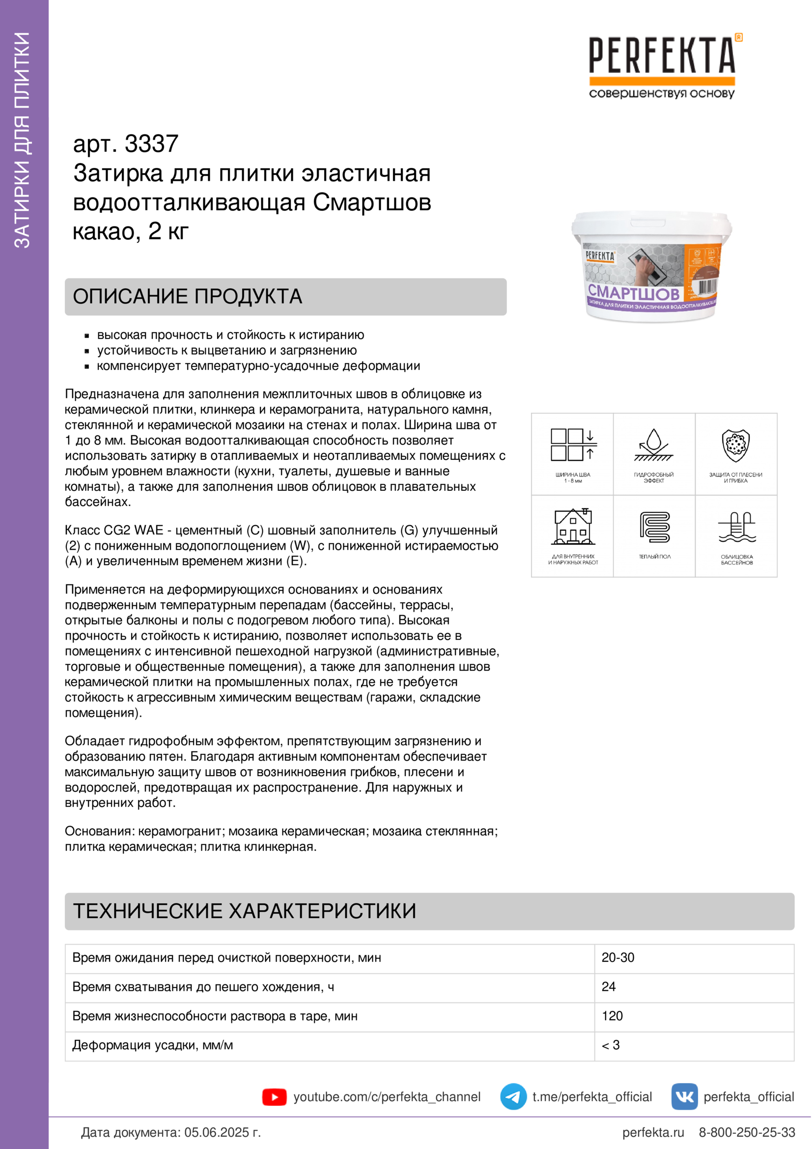 Все рекомендации и технические характеристики верны при температуре окружающей среды +20 С и относительной влажности 60 %. Качество материала гарантируется только при точном соблюдении инструкции производителя по технологии применения и требований СНиП и СП. Данная инструкция теряет силу после появления новой версии на сайте perfekta.ru.