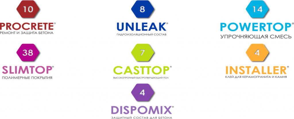 Жидкие составы Dispomix предназначены для предварительной и последующей обработки бетона с целью его защиты от воздействия ГСМ, воды, разбавленных кислот и щелочей. Для гидроизоляции бетонных резервуаров для воды, в том числе питьевой, очистных сооружений, коллекторов, а также производственных зон с повышенной влажностью, мы предлагаем продукцию из серии Unleak.
