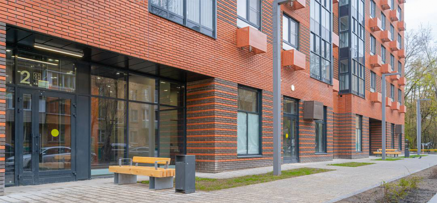 Для удобства, комфорта и беспрепятственного перемещения граждан маломобильных групп населения и родителей с колясками вход в подъезд расположен на одном уровне с отметкой земли. Первый этаж оформлен витражным остеклением. Это делает фасад здания современным и функциональным. На первом этаже жилого дома предусмотрен вестибюль, помещение консьержа, колясочная.