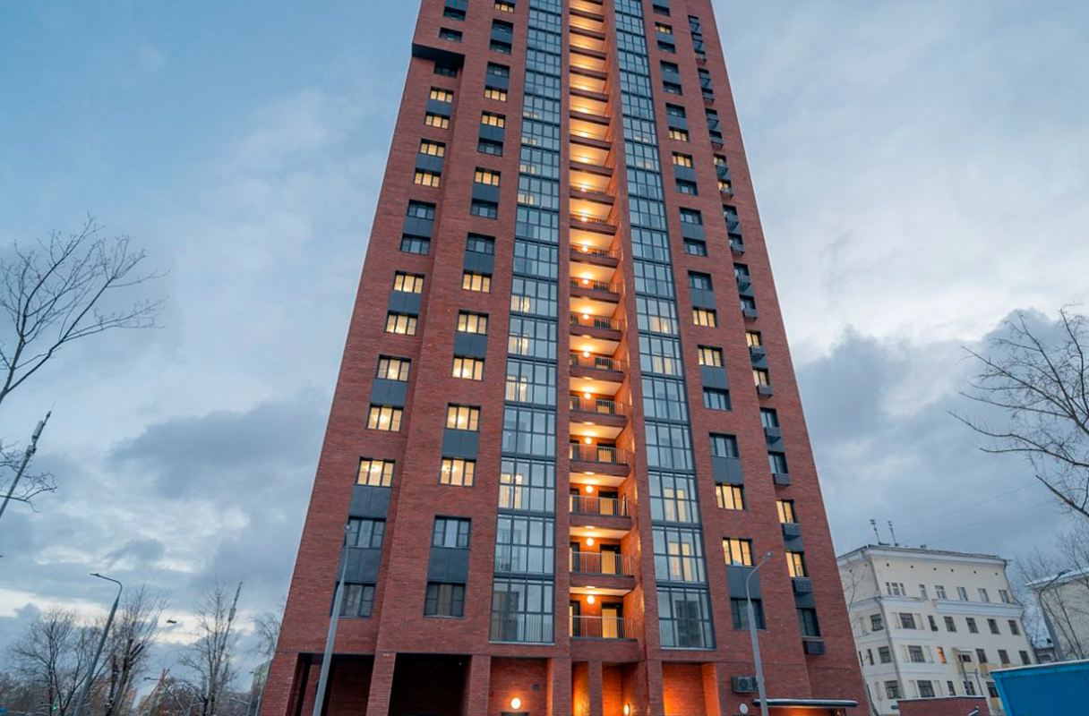 Проект предусматривает строительство жилого дома с подземной автостоянкой. При внешней отделке здания применяется система вентилируемого фасада с использованием керамических плит терракотового цвета. На фасадах устанавливаются корзины для кондиционеров. Первый этаж нежилой — на нем размещаются объекты инфраструктуры и технические помещения для обслуживания жилого дома. Входная группа оформлена витражным остеклением. В ней предусматриваются помещение для консьержа и колясочная.