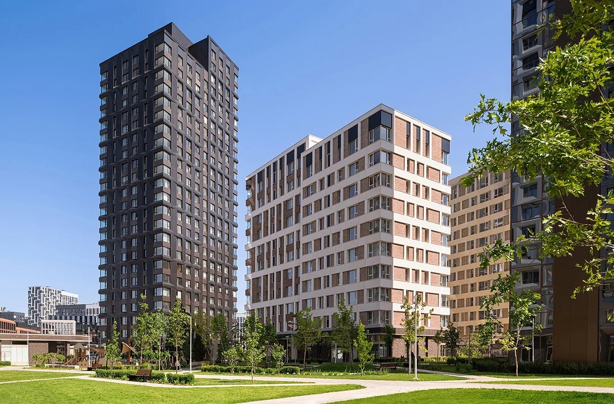 Жилая часть района состоит из нескольких urban-блоков, представляющих собой небольшие закрытые кварталы, состоящие из нескольких разновысотных корпусов. Все здания в новостройке возводятся по монолитной технологии, что обеспечивает им безупречные тепло- и звукоизоляционные характеристики, долговечность и надежность. В архитектурном облике района, разработанном специалистами известного бюро Skidmore, Owings & Merrill (SOM), преобладают строгие прямые линии, а большая площадь остекления фасадов придает корпусам легкость и воздушность. Высота зданий в каждом урбан-блоке варьируется от 7 до 26 этажей.