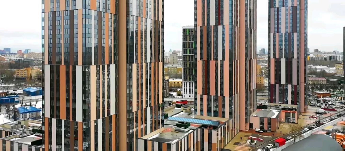 Мастерская отличается нестандартным подходом и яркими, уникальными идеями при разработке образов. В этот раз компания решила уместить на относительно небольшой территории три высотные башни, которые поставлены на общий стилобат. При этом дома расположены не ровно в ряд, а с небольшим смещением по диагонали – это помогает улучшить инсоляцию и сделать так, чтобы во всех квартирах было достаточно света и открывались живописные виды. Корпуса жилого комплекса строятся по монолитной технологии, с железобетонным каркасом и стенами из газобетонных блоков.