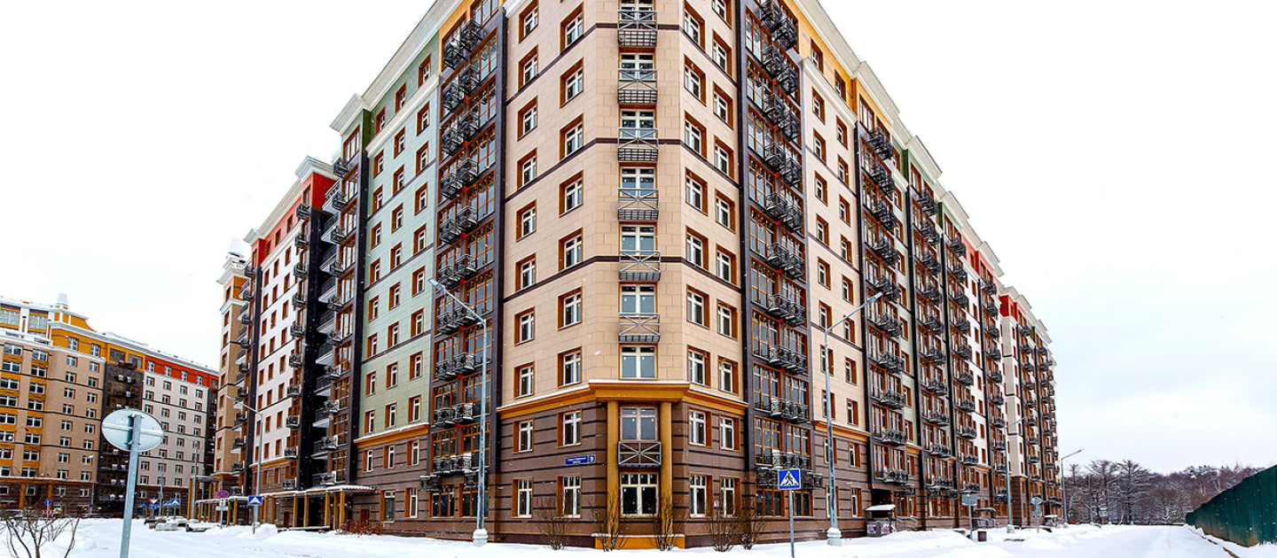 Фасады невысоких домов (7-11 этажей) украшены пилястрами, колоннами и карнизами. Классические декоративные элементы органично сочетаются с современными плиточными фасадами и большими панорамными окнами. Дома при этом расположены аккуратными кварталами с изолированными большими дворами площадью по 1 га каждый. Европейский подход при составлении проекта уместен и не нарушает общую задумку. Основные цвета фасадов корпусов – спокойный кремовый и кофейный оттенки. Верхние этажи сделали более яркими, выделив их красным и желтым. Во дворах установлены детские площадки, организованы клумбы, установлены скамейки.